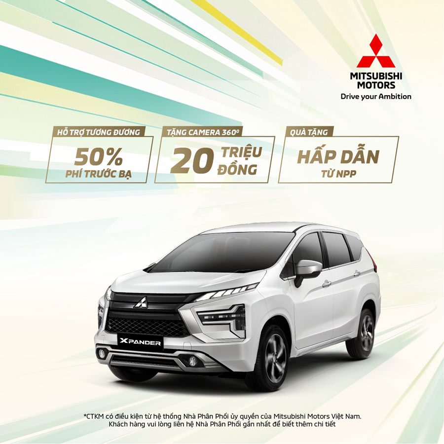 Với mong muốn đem lại sự hài lòng tối đa cho khách hàng, chúng tôi cũng mang đến ưu đãi hấp dẫn cho các mẫu xe Xpander và Outlander, bao gồm gói hỗ trợ lên đến 50% phí trước bạ và quà tặng là camera toàn cảnh 360 độ hoặc camera lùi, tùy thuộc vào phiên bản.