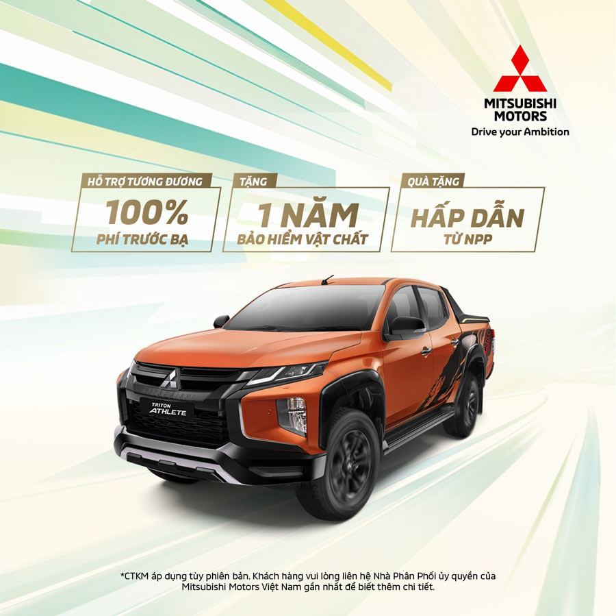 Dành cho các mẫu xe Attrage và Triton, khách hàng cũng được hưởng những ưu đãi tương tự, bao gồm 100% phí trước bạ và một số quà tặng có giá trị.