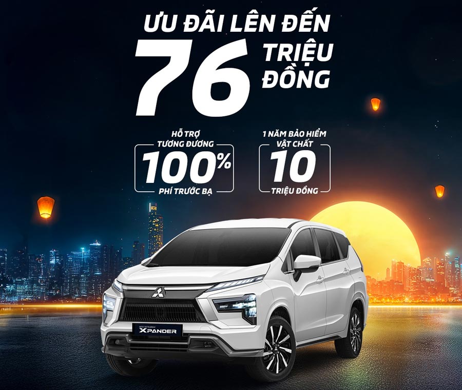 - Xpander & Xpander Cross (MY26): Hỗ trợ 100% lệ phí trước bạ + 01 năm bảo hiểm vật chất (tổng ưu đãi lên tới ~80 triệu đồng).